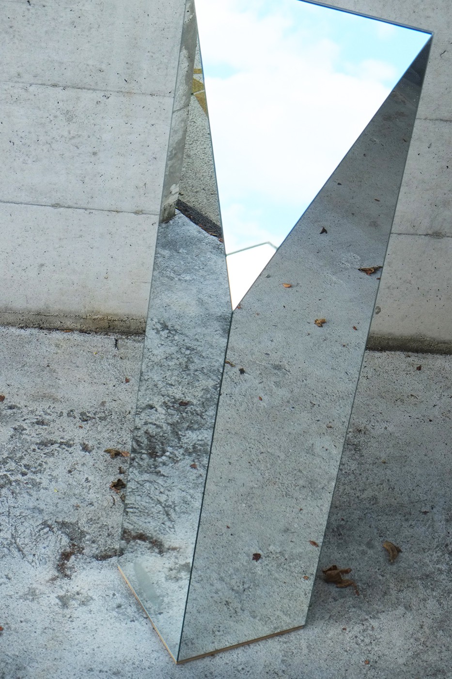 Mirror sculpture to walk around and experience space deconstruction. A way to watch differently on one-self "... Ce qui a été compris n'existe plus, Oiseau s'est confondu avec le vent, Le ciel avec sa vérité, L'homme avec sa réalité." Paul Eluard